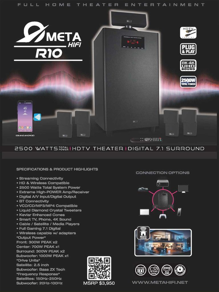 The Meta HiFi R10 isn’t meant to be a subtle upgrade. It’s designed as a full-scale home theater package: digital 7.1 surround, 2500W total power, plug-and-play positioning, and broad source compatibility including Bluetooth and digital A/V connections. Meta HiFi R10 Home Theater Syst…